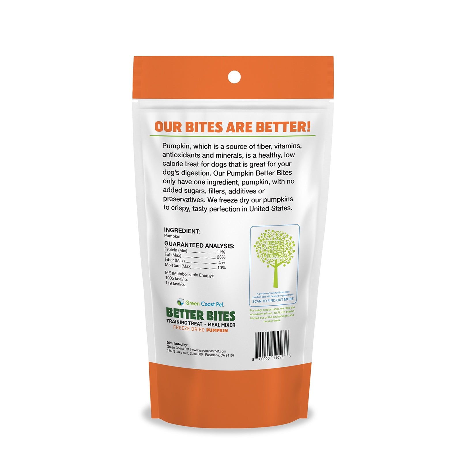 Better Bites make great training treats that won't add a lot of calories to your dogs diet. They also make a great meal mixer that adds fiber, nutrients and flavor to your dog's bowl of food. We freeze dry our pumpkins to crispy crunch perfection in the United States.