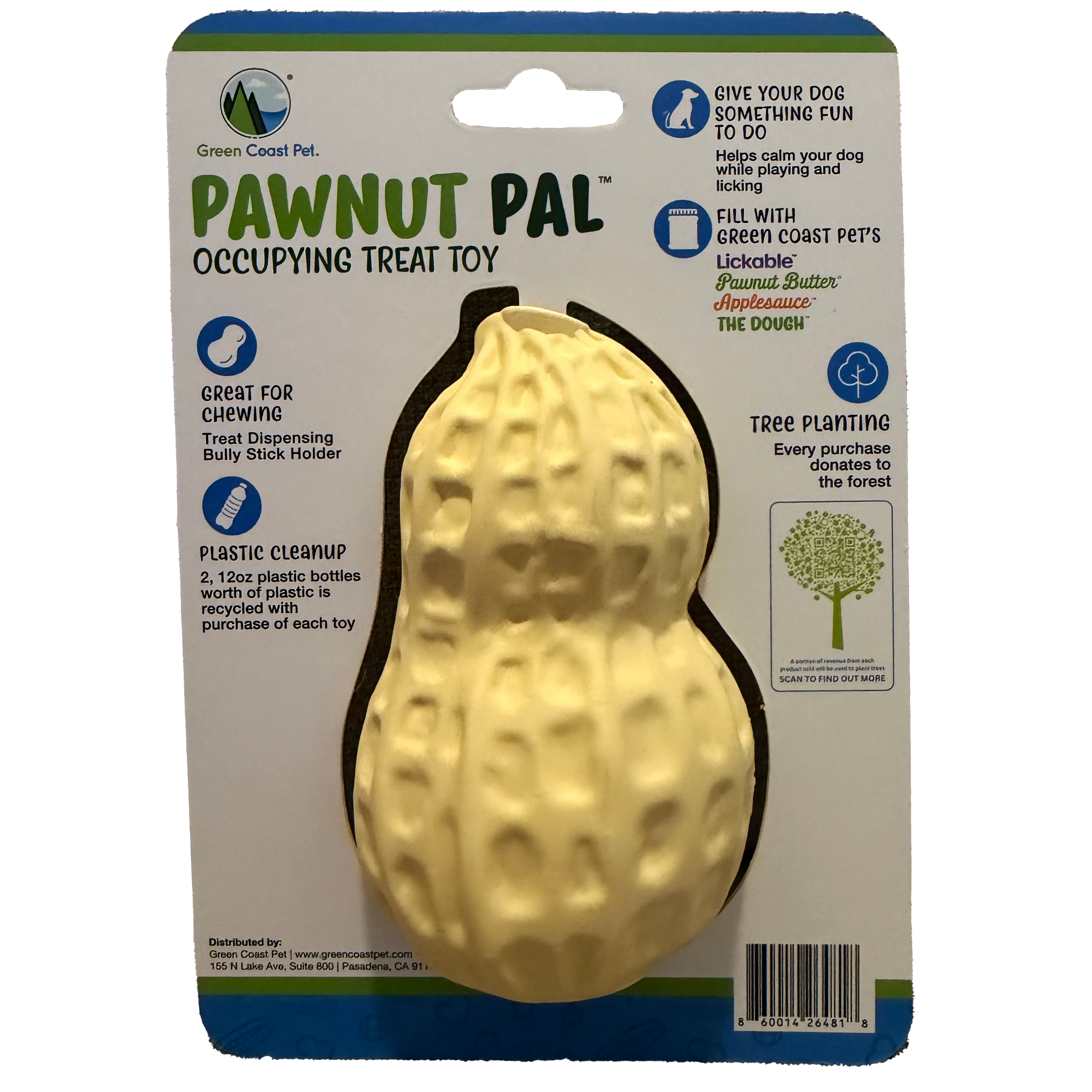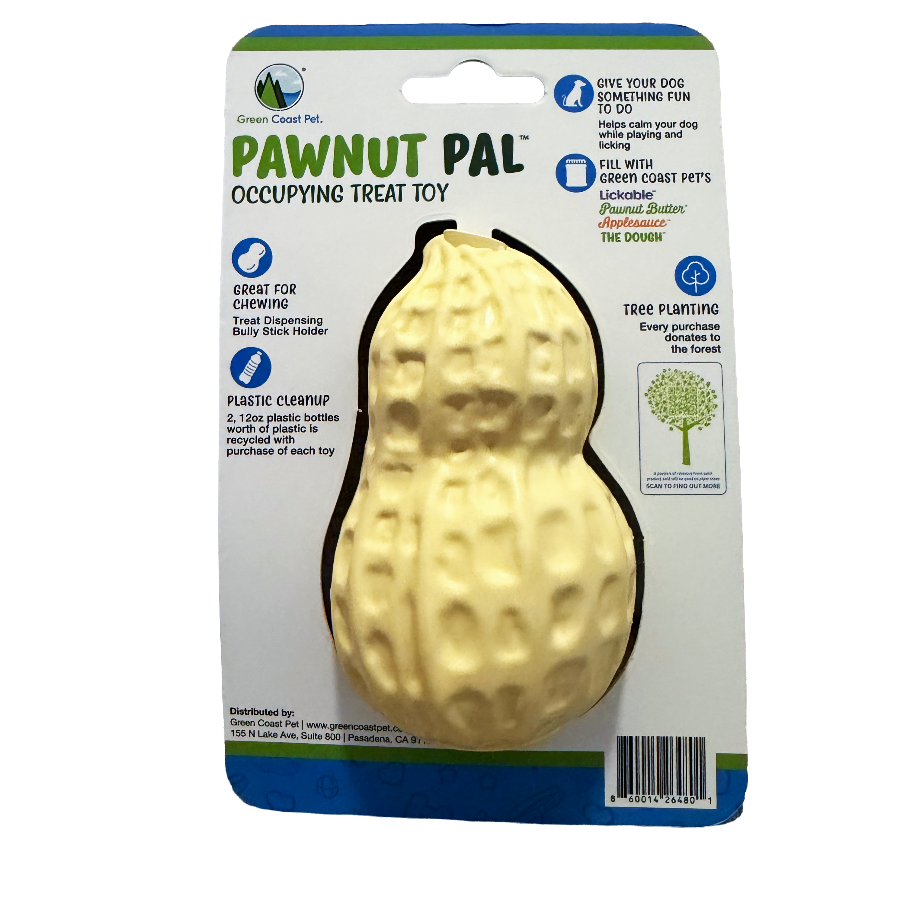 Made from natural rubber, our Pawnut Pal is the perfect partner for Pawnut Butter. The large cavity on Green Coast Pet's Pawnut Pal is perfect for filling with any peanut butter based prodcut such as Green Coast Pet's Pawnut Butter, Lickables or Pawnut Butter THE DOUGH. Try filling Pawnut Pal with Green Coast Pet's Applesauce and freezing it for a cool, low calorie treat. Pawnut Pal is top rack dishwasher safe and is a fun way to give your dog a long lasting treat that will keep them busy and calm during stressfull situations. If your giving your dog peanut butter, give it to them in our Pawnut Pal!